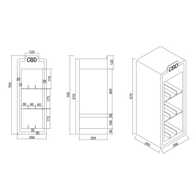 LED-CBD-Vitrine 70x26x25cm